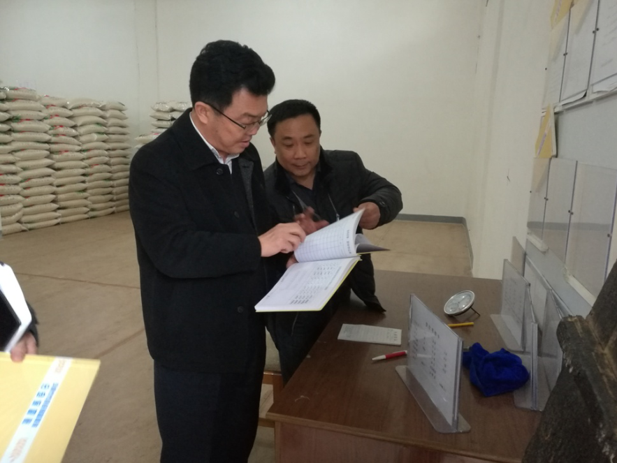在检查过程中,黄猛副秘书长参观了我公司胶泥坝库房,在与我公司总经理张强同志的亲切交谈中,了解了我公司人员基本情况和仓容、库存等情况,听取了公司对未来发展状况和前景的期望,黄猛副秘书长还关切的询问了公司现有职工薪资、生活等方面的问题,并对库房内帐本和粮油进行了查看。对我公司库存粮油对码整齐、安全措施到位、保管员工作负责等方面表示了肯定,也要求我公司在今后的工作中一切严格按照国家规章制度执行,严格履行工作职责,杜绝不合格粮食入库,确保粮食储备安全,努力学习政治理论知识,不断提高员工的综合素质,要按时、保质、保量完成储备粮任务。
